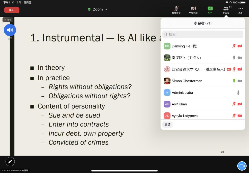 2021年6月11日下午,新丝路法学院联盟“院长论坛”首场讲座成功举办。新加坡国立大学讲席教授、法学院院长Simon Chesterman教授为联盟25所院校师生以及丝绸之路大学联盟的师生带来了题为“我们,机器人?人工智能与法律人格的限度(We, the Robots? Artificial Intelligence and the Limits of Legal Personality)”的线上讲座。讲座由江南在线客服单文华院长主持,国际处雷艳君副处长致辞。